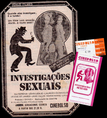 O filme chamava-se INVESTIGAÇÕES SEXUAIS (THE SENSUOUS DETECTIVE) e era distribuído pela Vénus Filmes. Eu ia nervosíssimo, e se os meus pais descobrissem? Mas não; acho que eles nem sonharam que o seu menino era capaz de tal atrocidade.